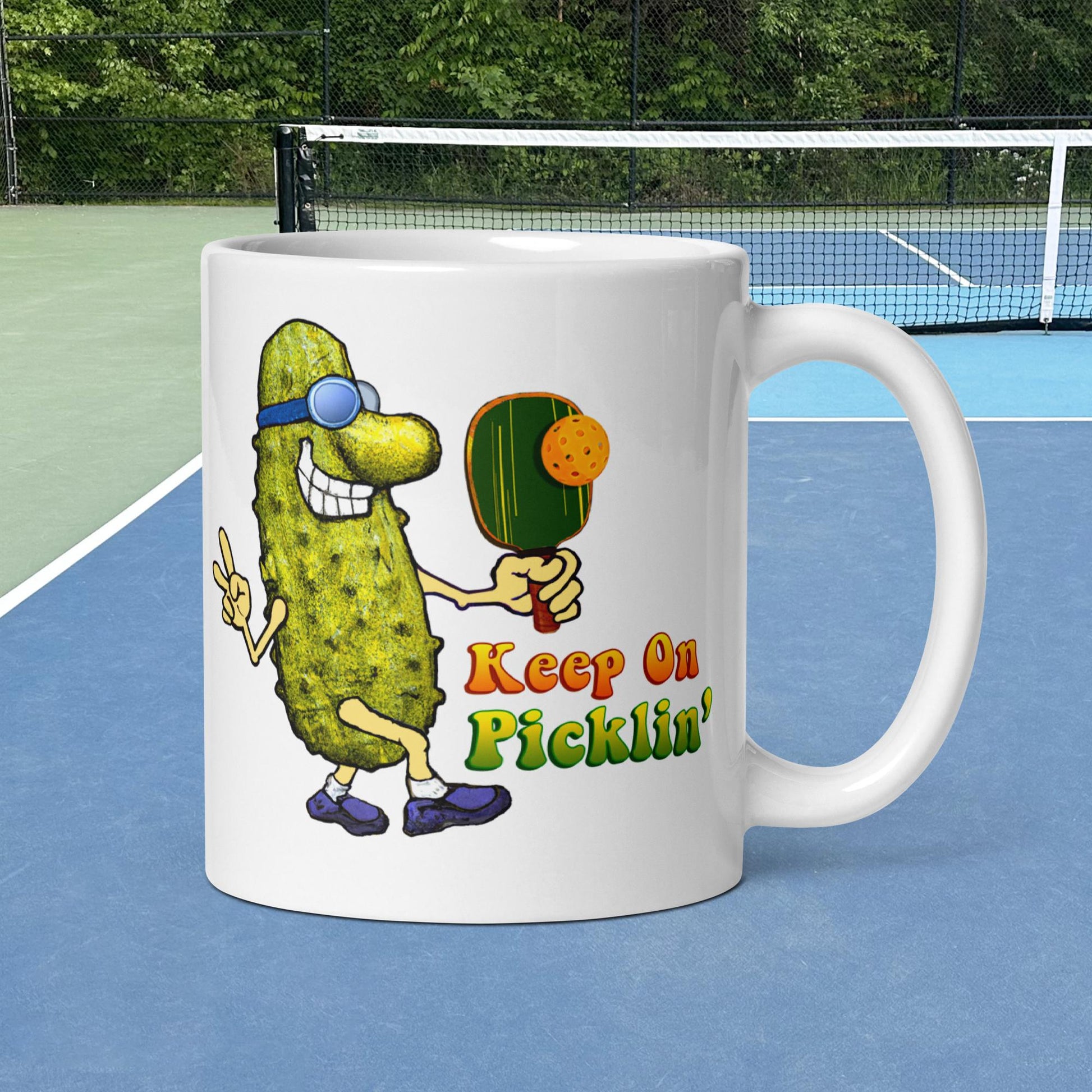 Fun Pickleball Mug, Keep On Picklin' Pickledude, White, 11oz or 15oz