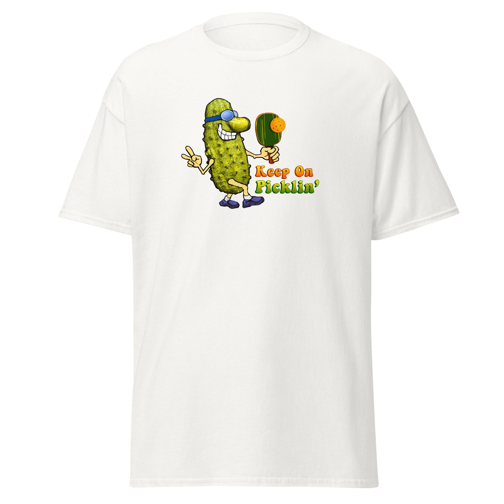 Men's Pickleball T-shirt, Keep On Picklin' Pickledude, Front Center Graphic, Short-sleeve
