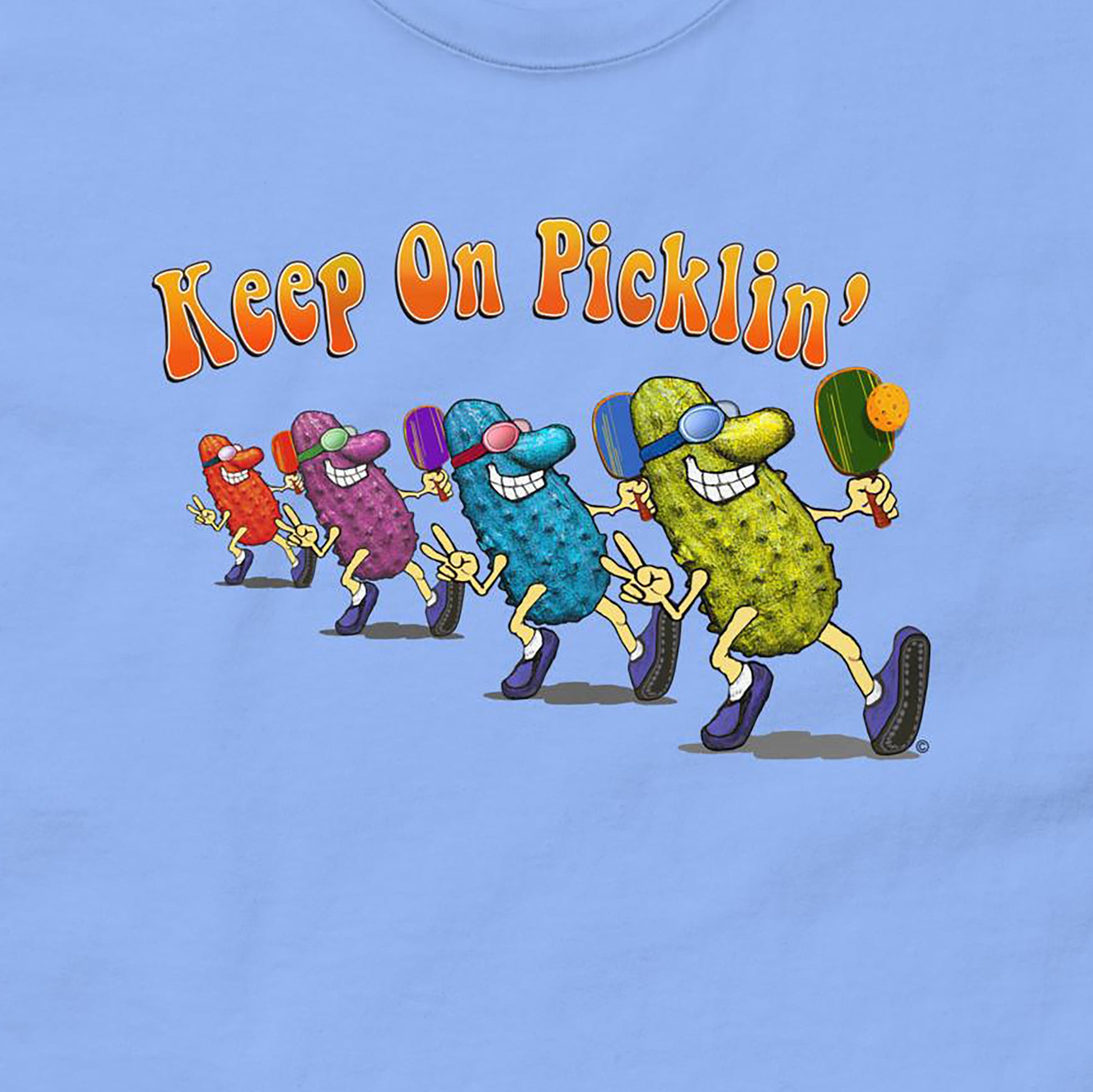 Look cool and stay cool in this fun, funny and unique Keep On Picklin' pickleball shirt while sharing laughs and scoring points on the court, or to show off your love for pickleball out around town. Or surprise your doubles partner and pickleball-loving family and friends with this fun birthday present, holiday gift or any day perfect pickleball gift.