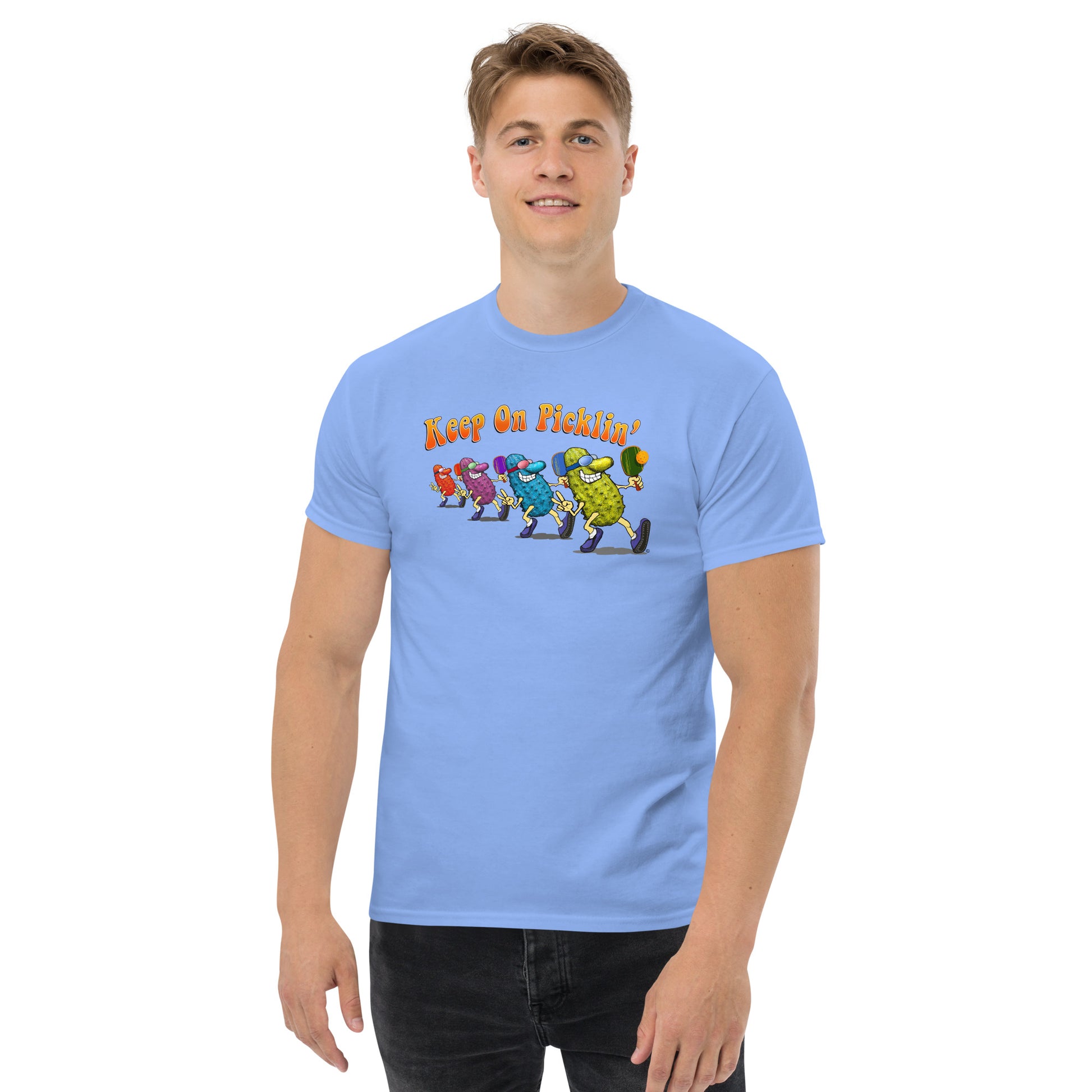 Men's Pickleball T-shirt, Keep On Picklin', Front Center Graphic, Short-sleeve
