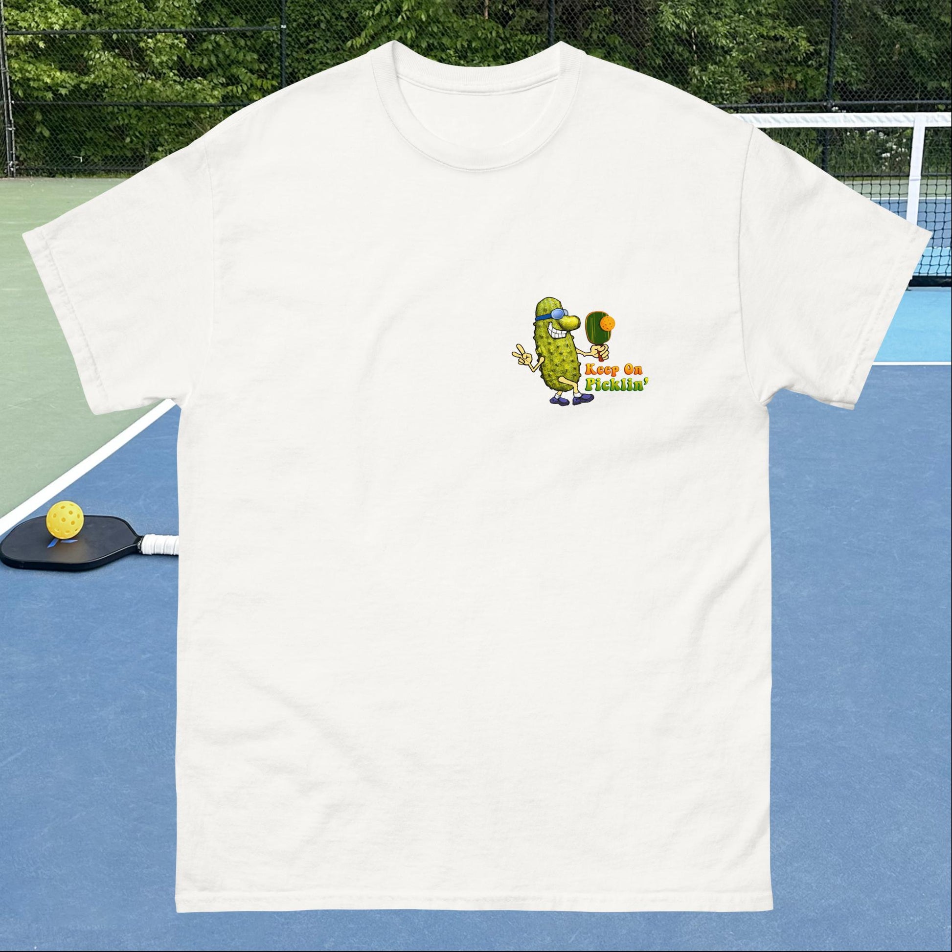 Men's Pickleball T-shirt, Keep On Picklin' Pickledude, Left Chest Graphic, Short-sleeve