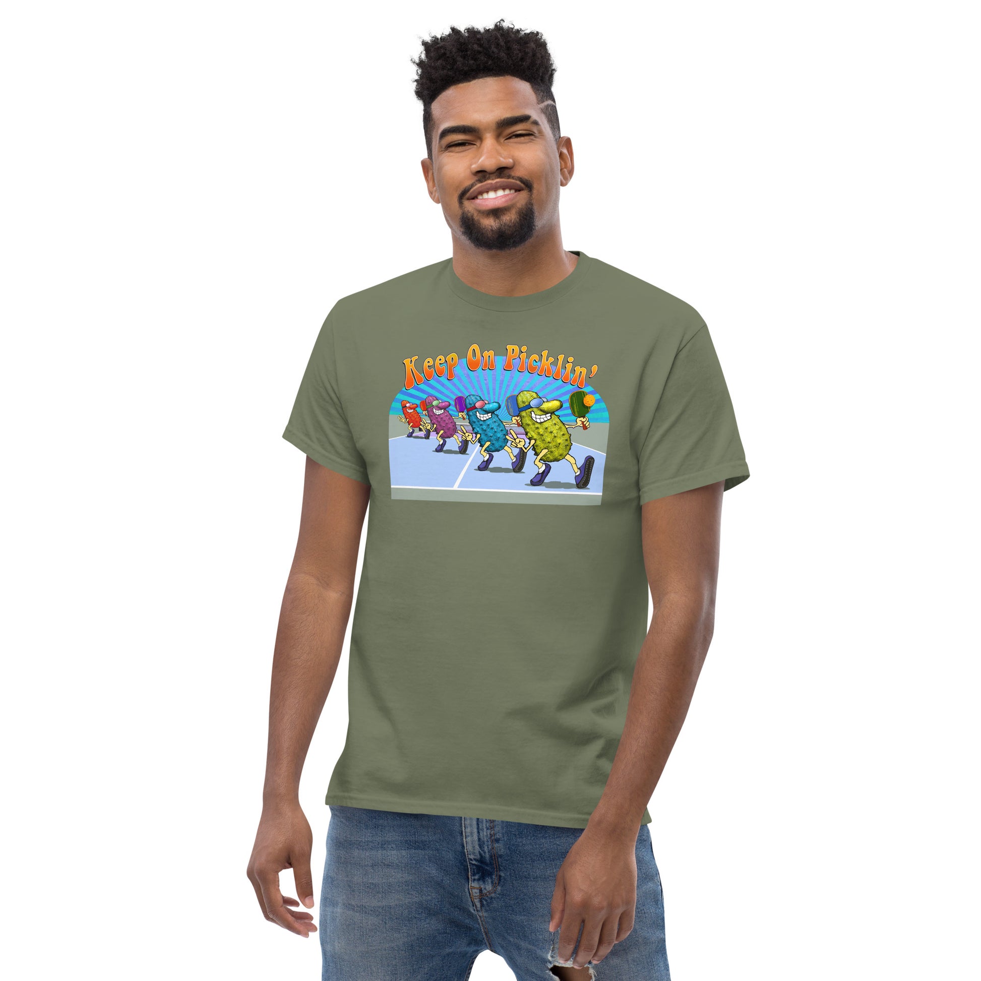 Men's Pickleball T-shirt, Keep On Picklin' Radial Arch, Short-sleeve
