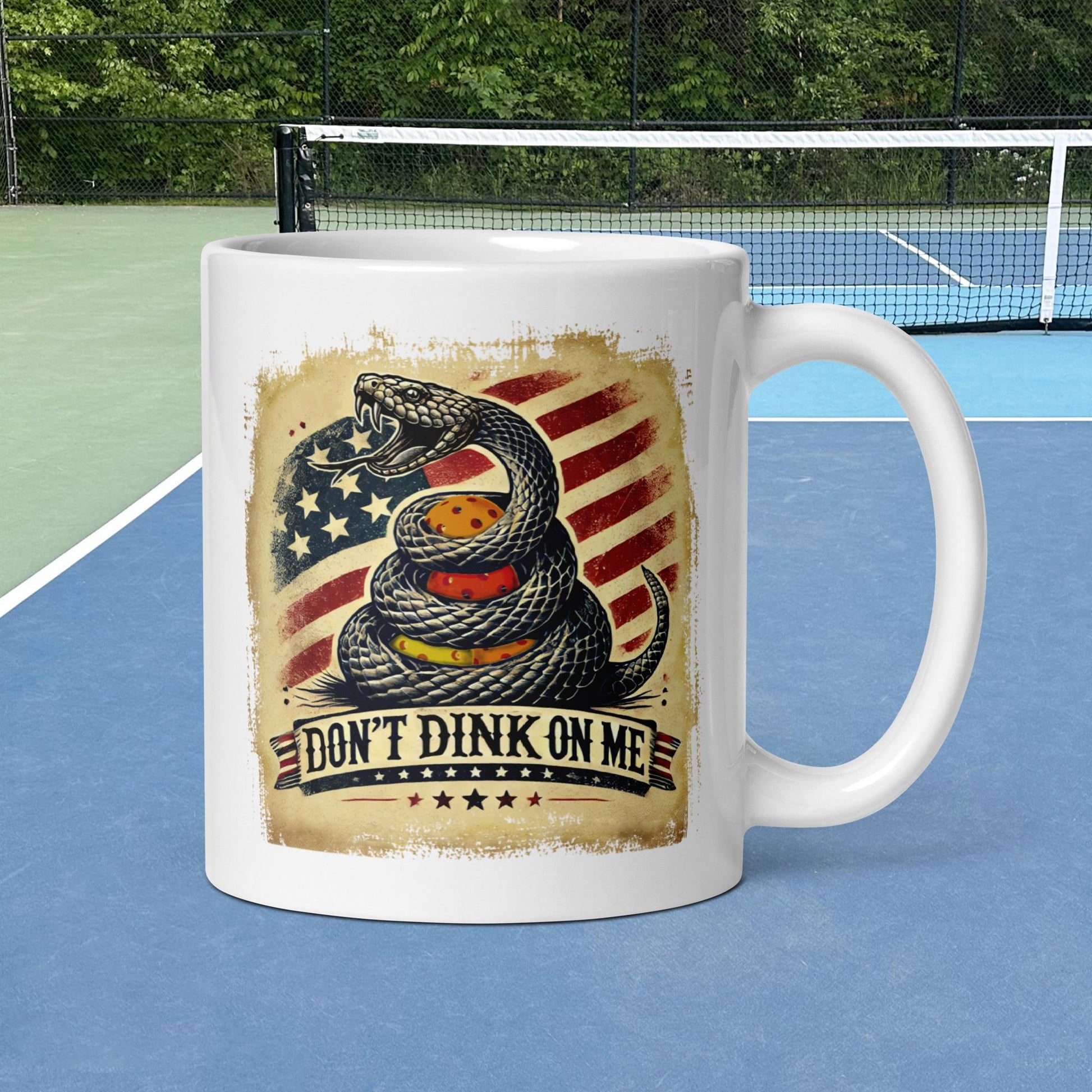 Patriotic Pickleball Mug, Don't Dink On Me, White, 11 oz or 15 oz