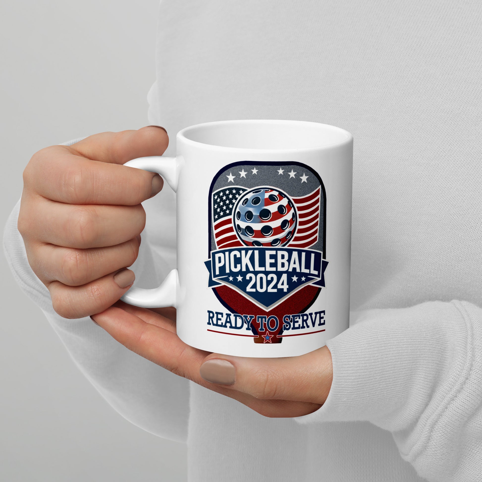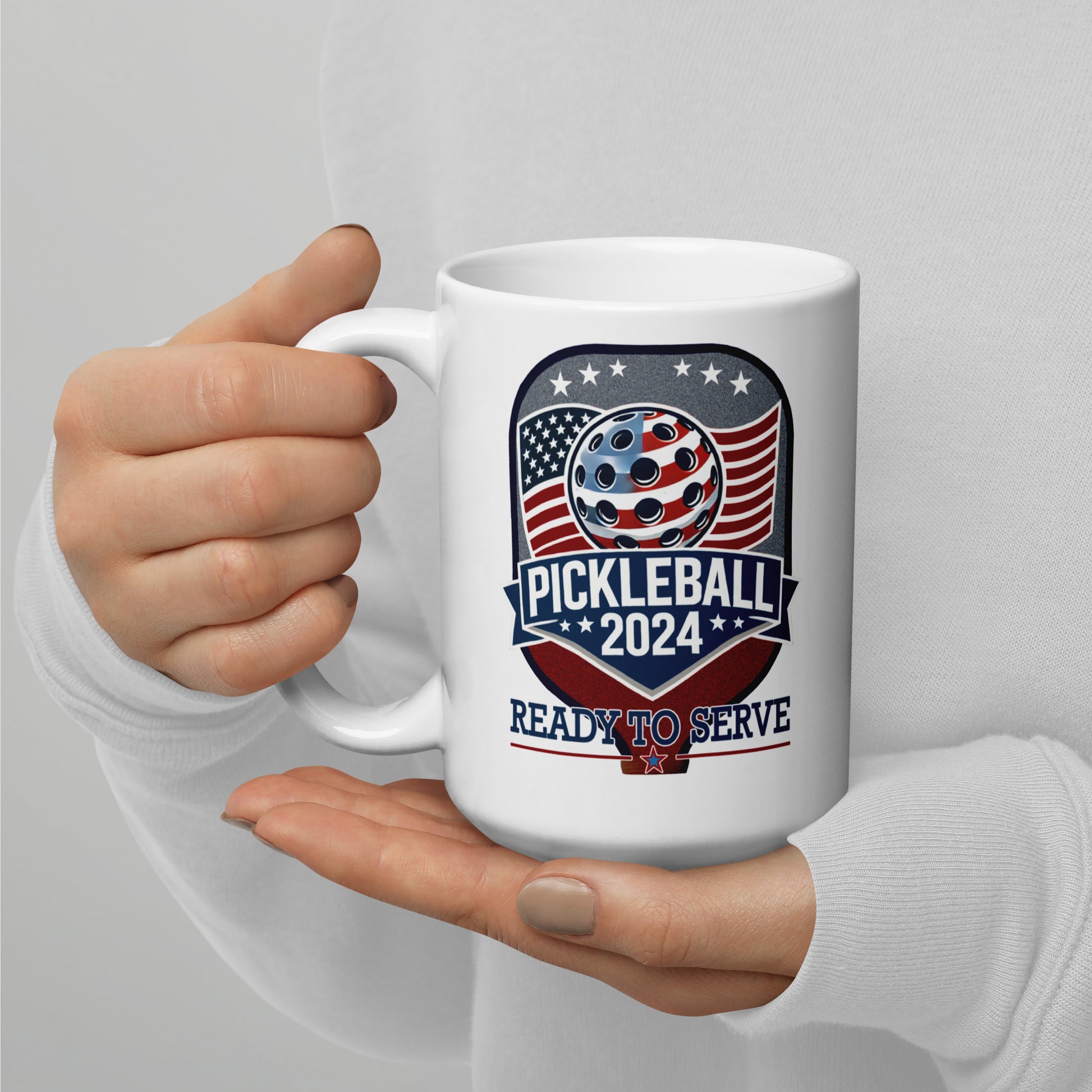 No matter what you want to fill it with, here's the PERFECT fun, patriotic and unique Pickleball 2024 Paddle Graphic pickleball mug for you, or as a birthday present, holiday gift or any day surprise for your doubles partner or pickleball-loving family and friends. Whether for enjoying morning coffee, evening tea, to fill with candy treats for gifting or simply to show off anybody's love for pickleball — everybody will vote for this Pickleball 2024 mug!