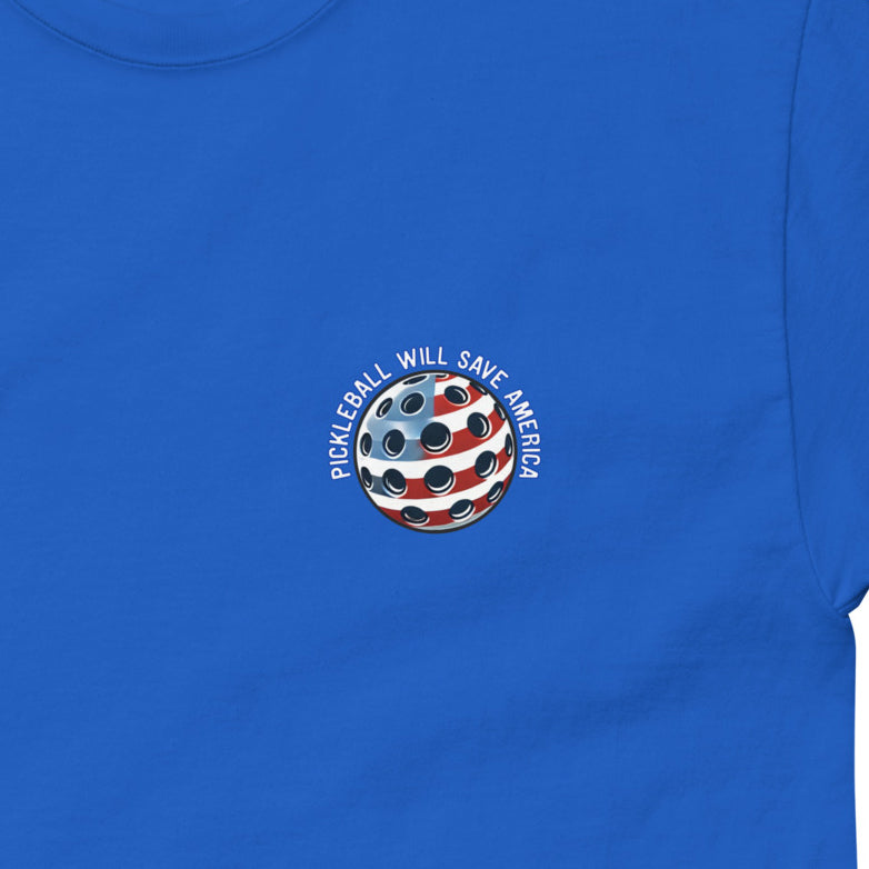 Patriotic Pickleball Shirt, Pickleball Will Save America, Front Left Chest