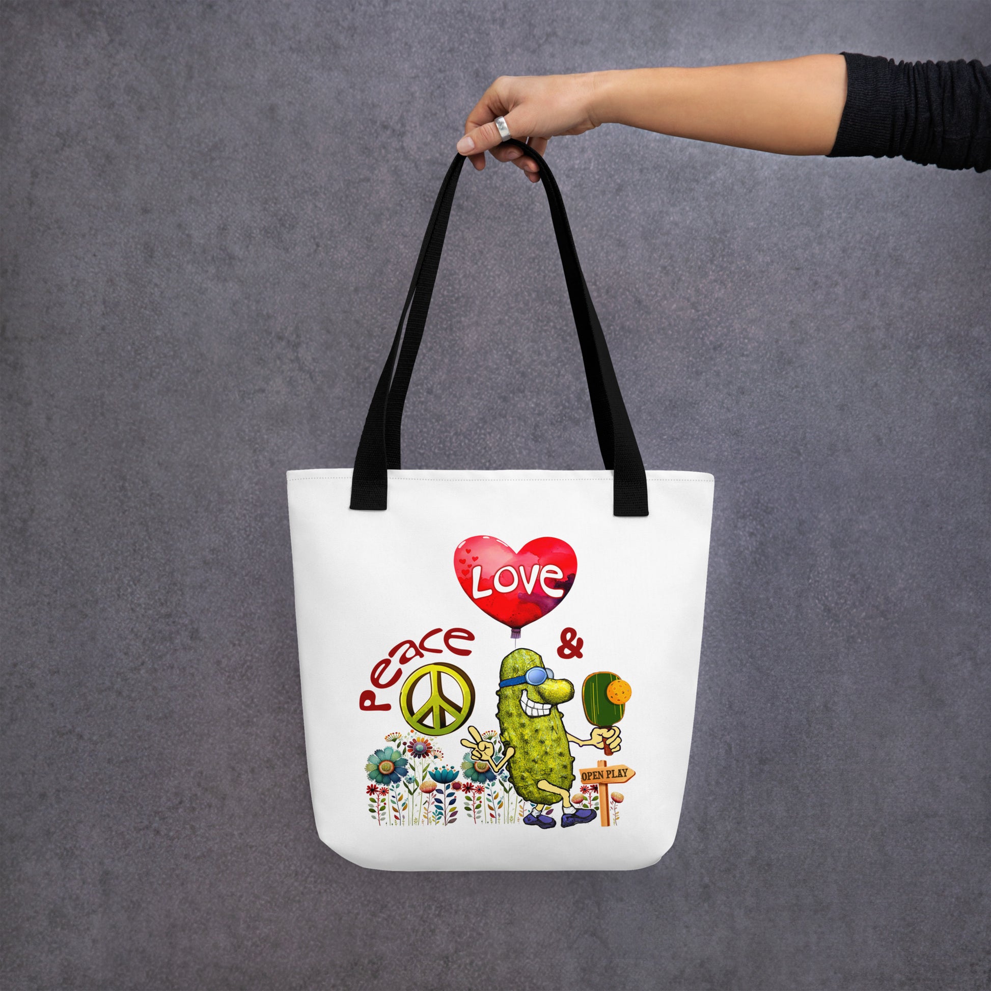 A spacious, fun and trendy tote bag featuring our original Peace, Love & Pickleball design, to help you carry around everything that matters.