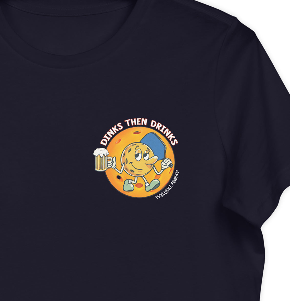 Women's Pickleball Shirt, Dinks Then Drinks, Graphic on Left Chest