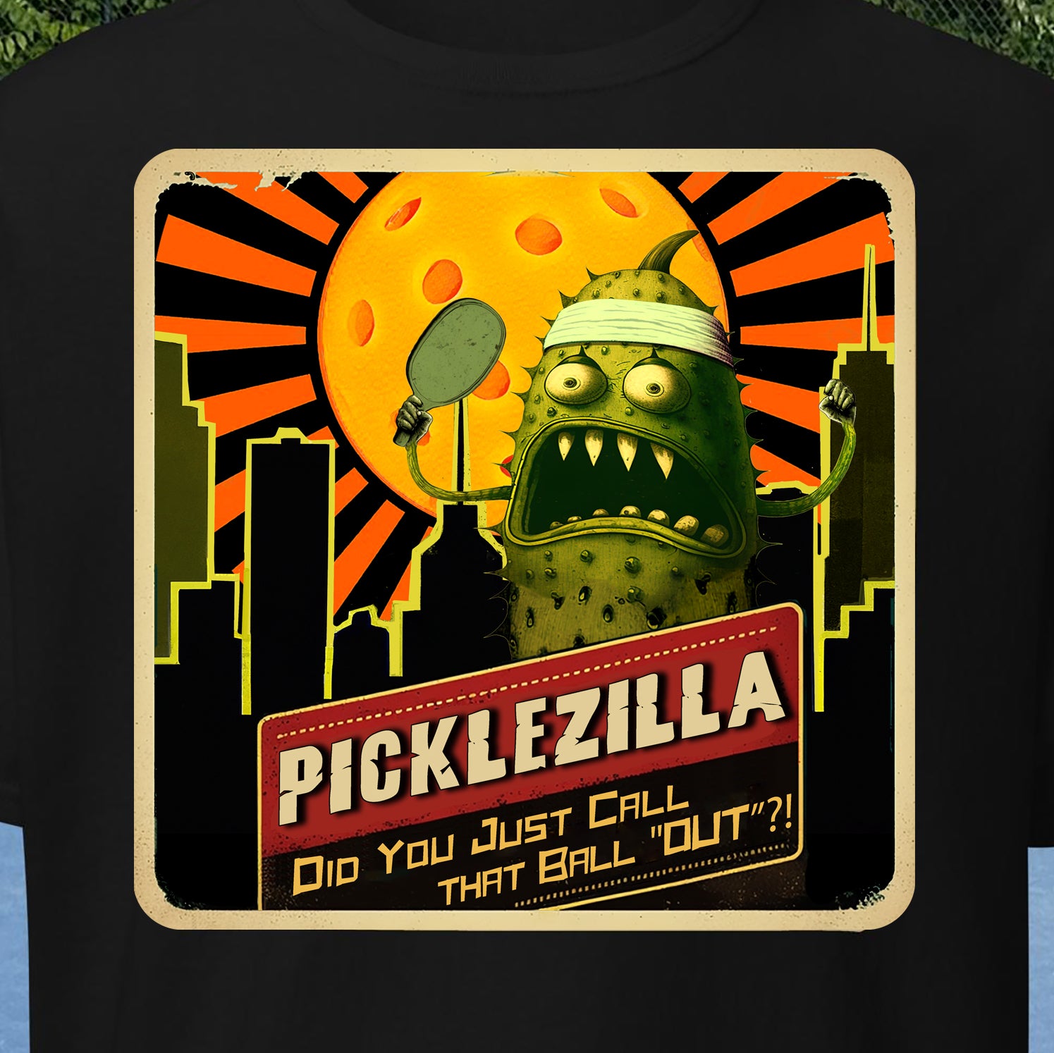 Men's Pickleball Shirt, Picklezilla Out Call, Graphic on Front