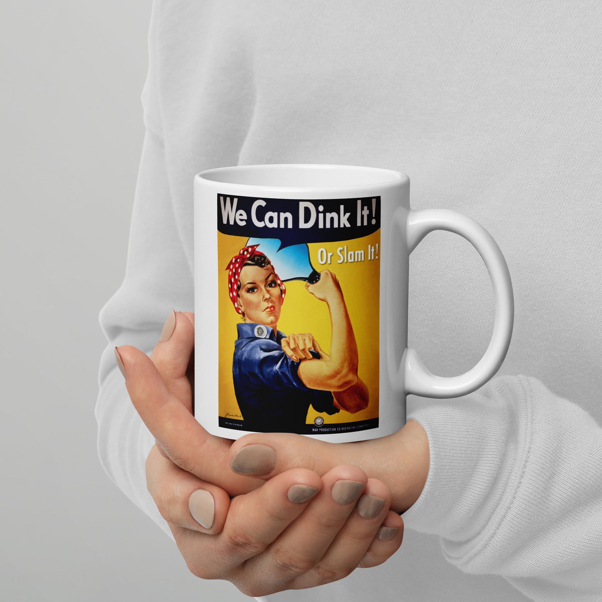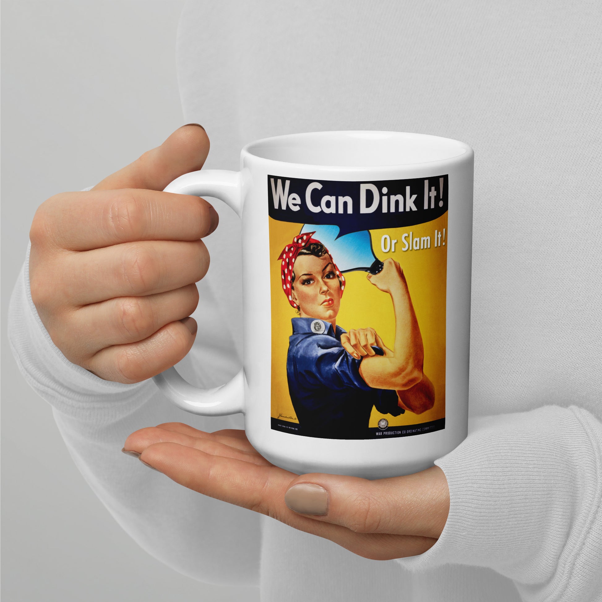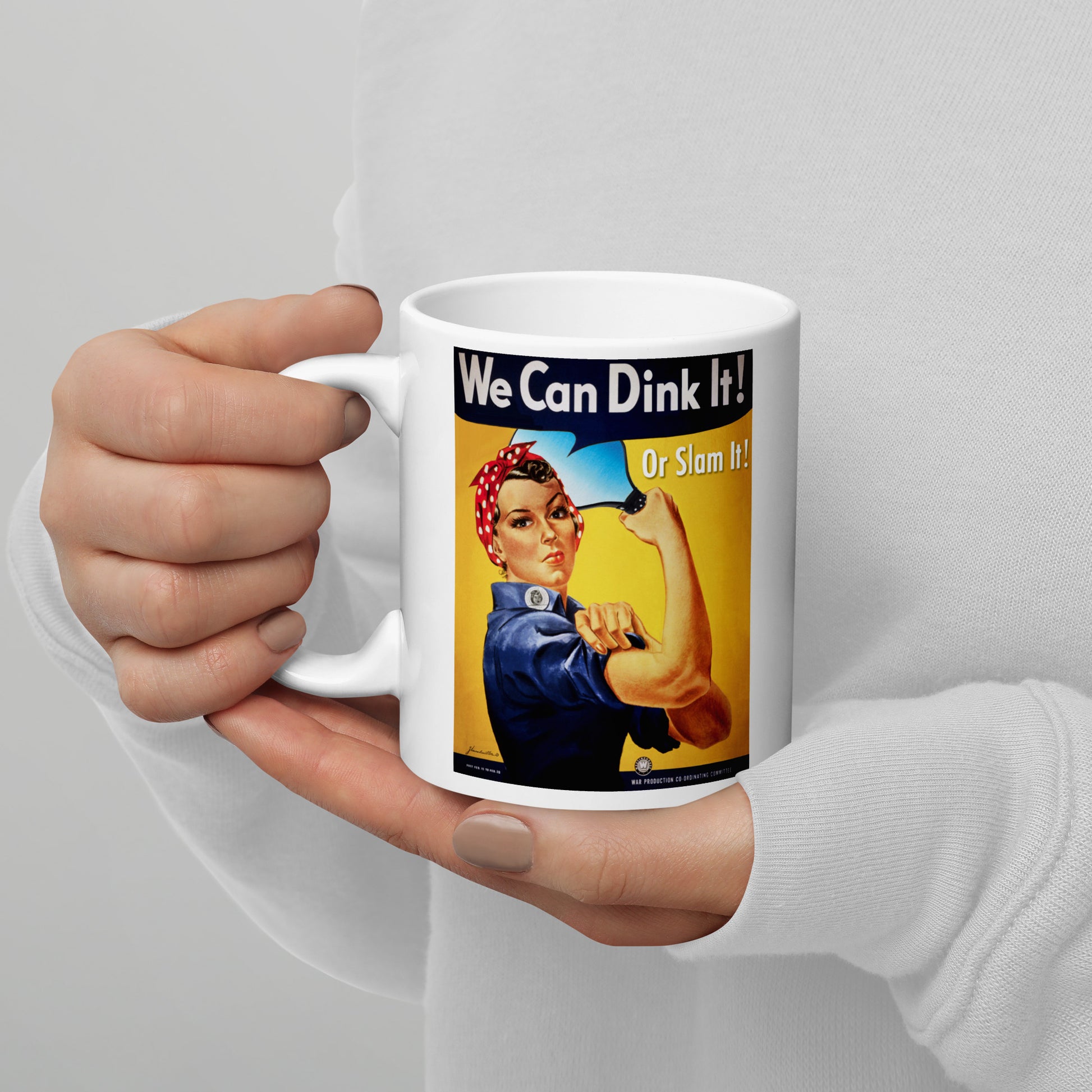 Rosie the Riveter Pickleball Mug, We Can Dink It or Slam It, White, 11oz or 15oz