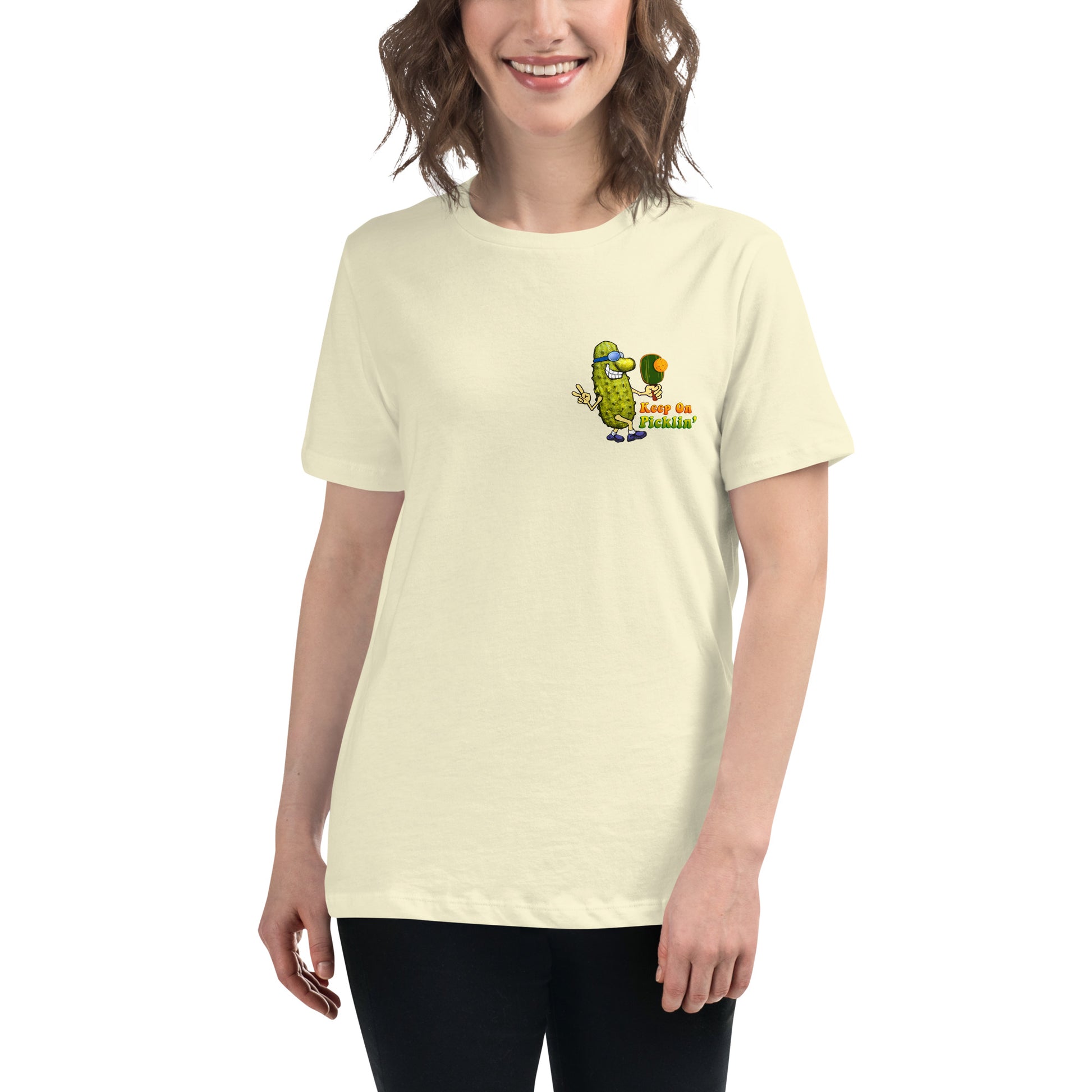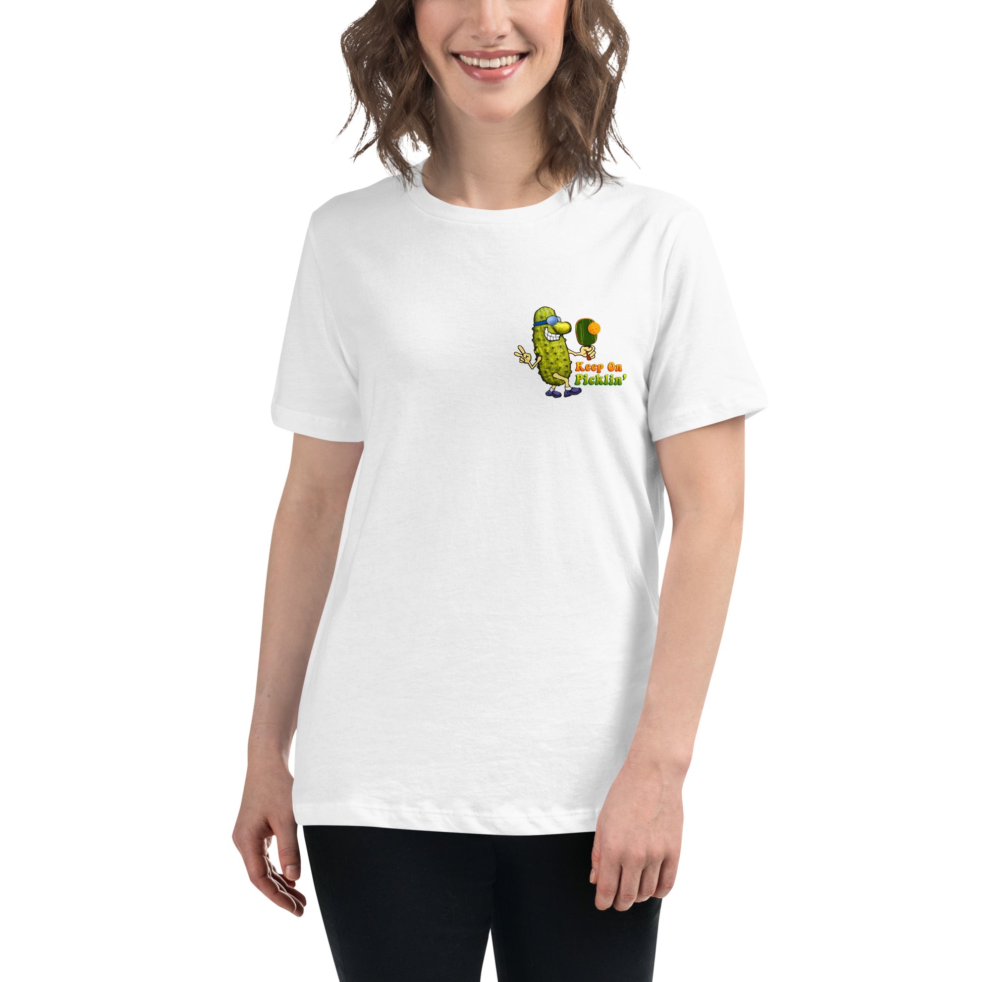 Women's Pickleball T-shirt, Keep On Picklin' Pickledude, Left Chest Graphic, Short-sleeve